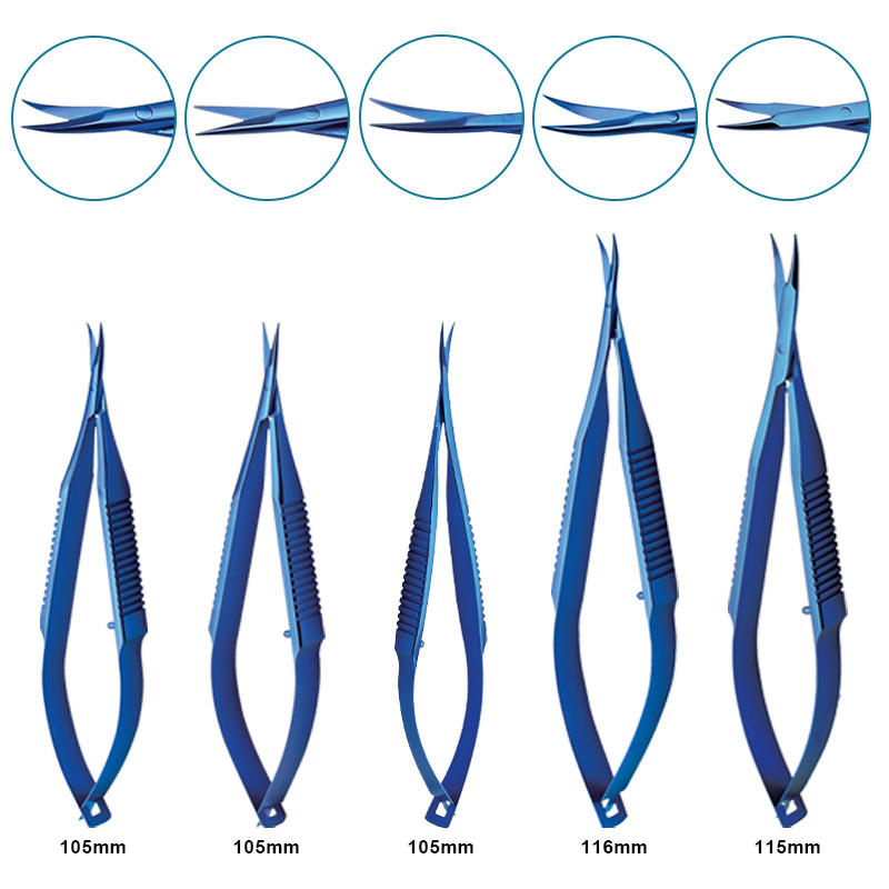 Juego de Instrumentos de Microcirugía y Oftalmología Reutilizables de Acero Inoxidable con Mango de Resorte y Micro Tijeras Castroviejo de Primera Calidad al por Mayor