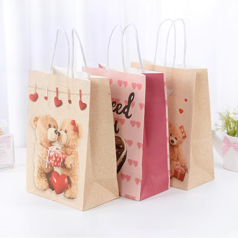 Bolsa de papel Kraft personalizada al por mayor, bolsa de papel Kraft marrón blanco con asa de cuerda, bolsa de papel de compras Kraft con asa retorcida