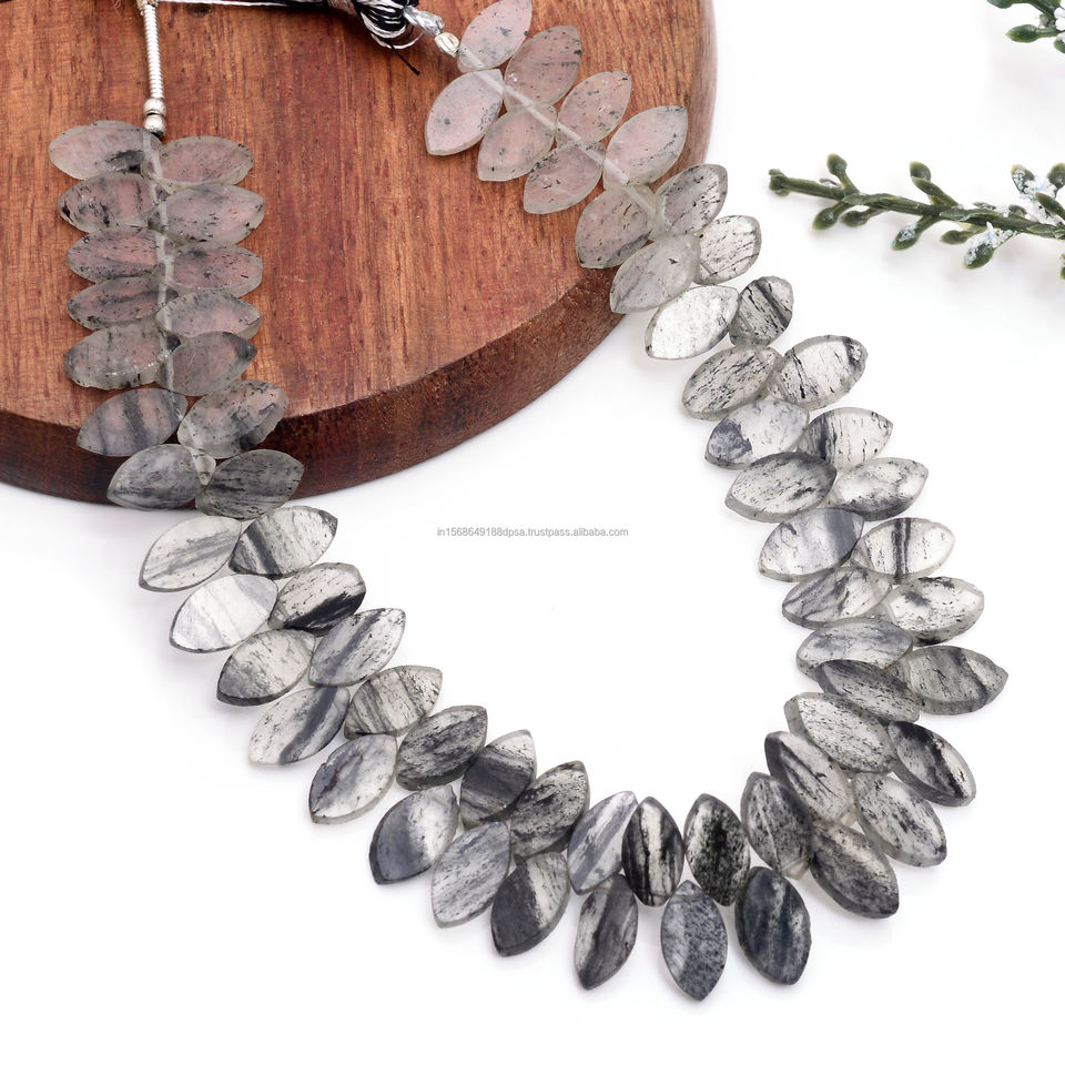 Venta al por mayor Premium Natural negro rutilo facetado Marquesa forma 8 pulgadas 5x9,5 8x13 cuentas hilo de piedras preciosas certificado por terceros
