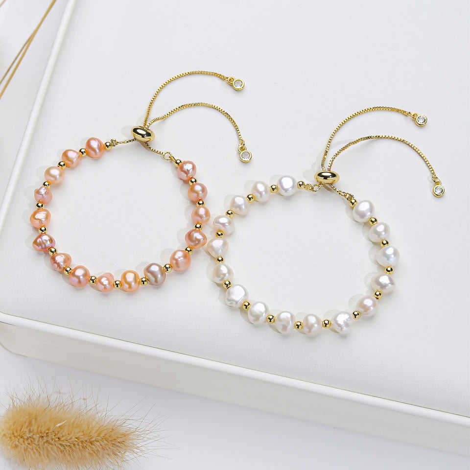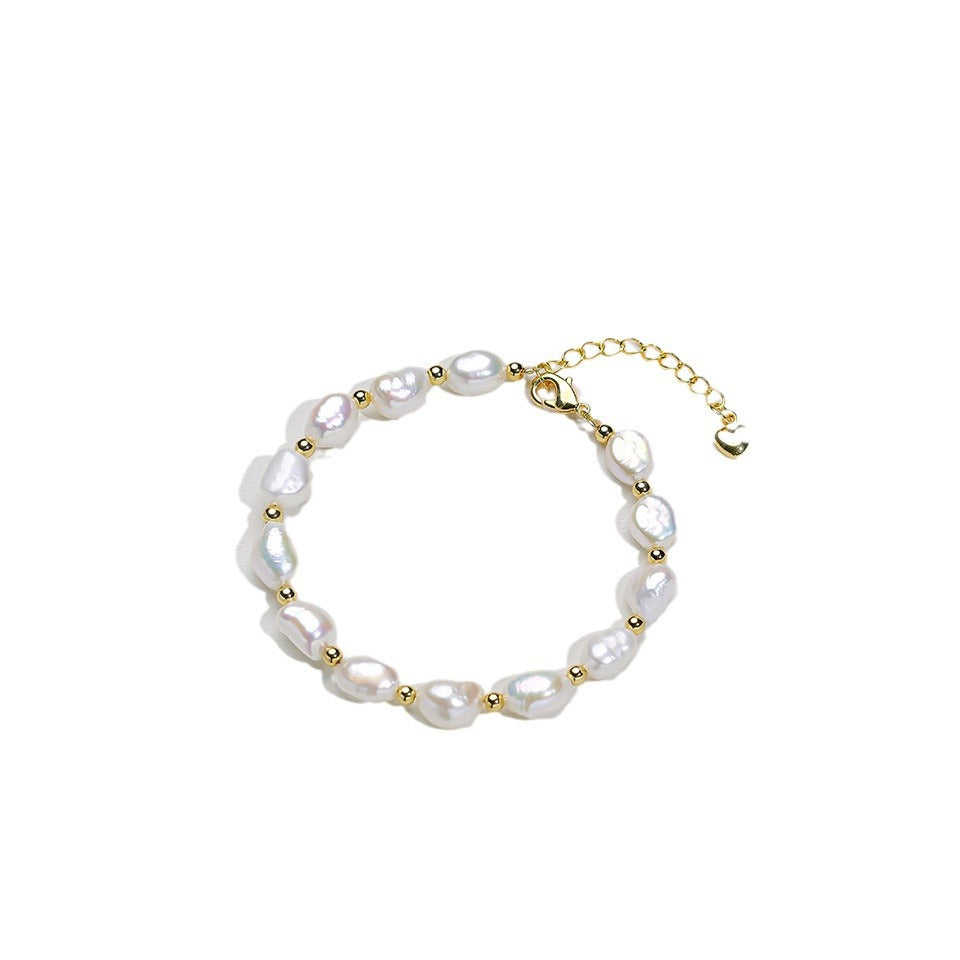 Pulsera de Perlas de Agua Dulce Naturales Blancas Barrocas para Mujer, Chapada en Oro de 14K, Joyería Ligera de Doble Cara, Venta al por Mayor de WENCHI