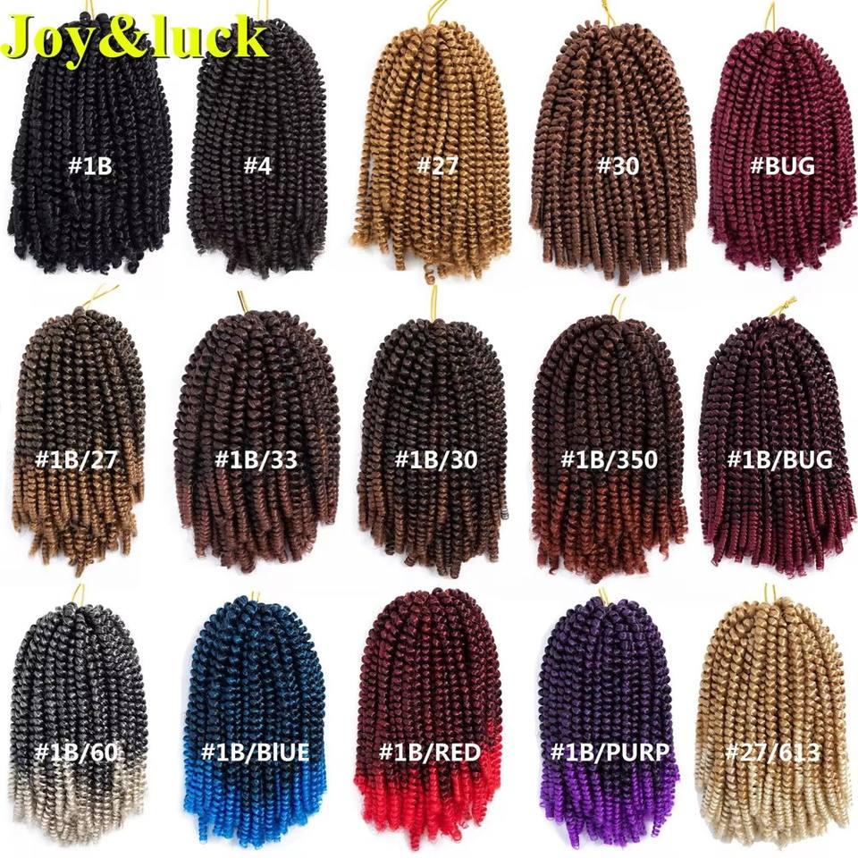 Precio al por mayor de 8 pulgadas Spring Twist Crochet Trenzas-Extensiones sintético de cabello rizado corto, estilo africano teñido