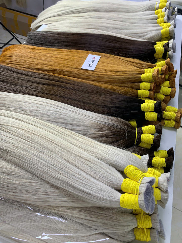 Precio al por mayor Extensiones de cabello a granel 100% Cabello Remy vietnamita 100 gramos Colores claros Super Doble dibujado 55 cm Recto natural