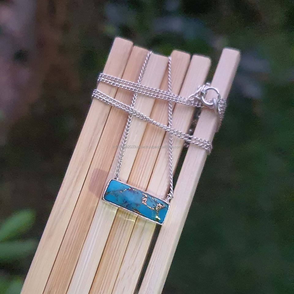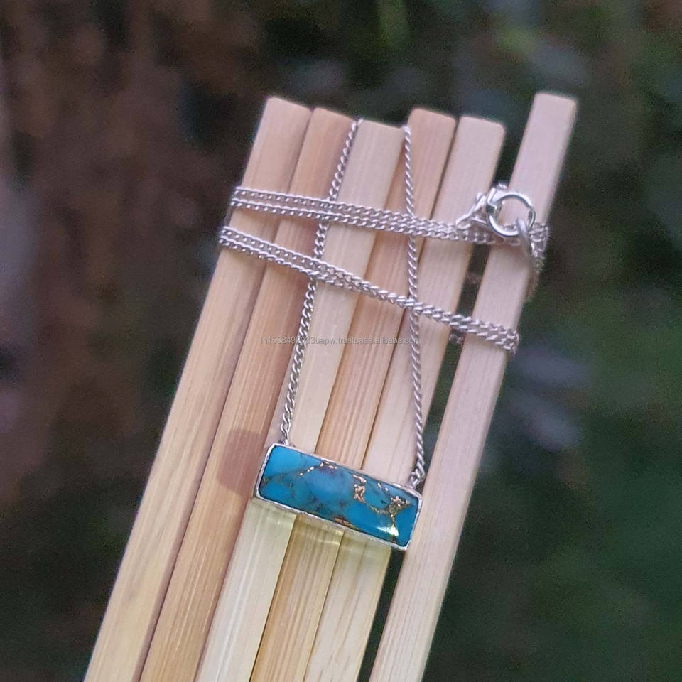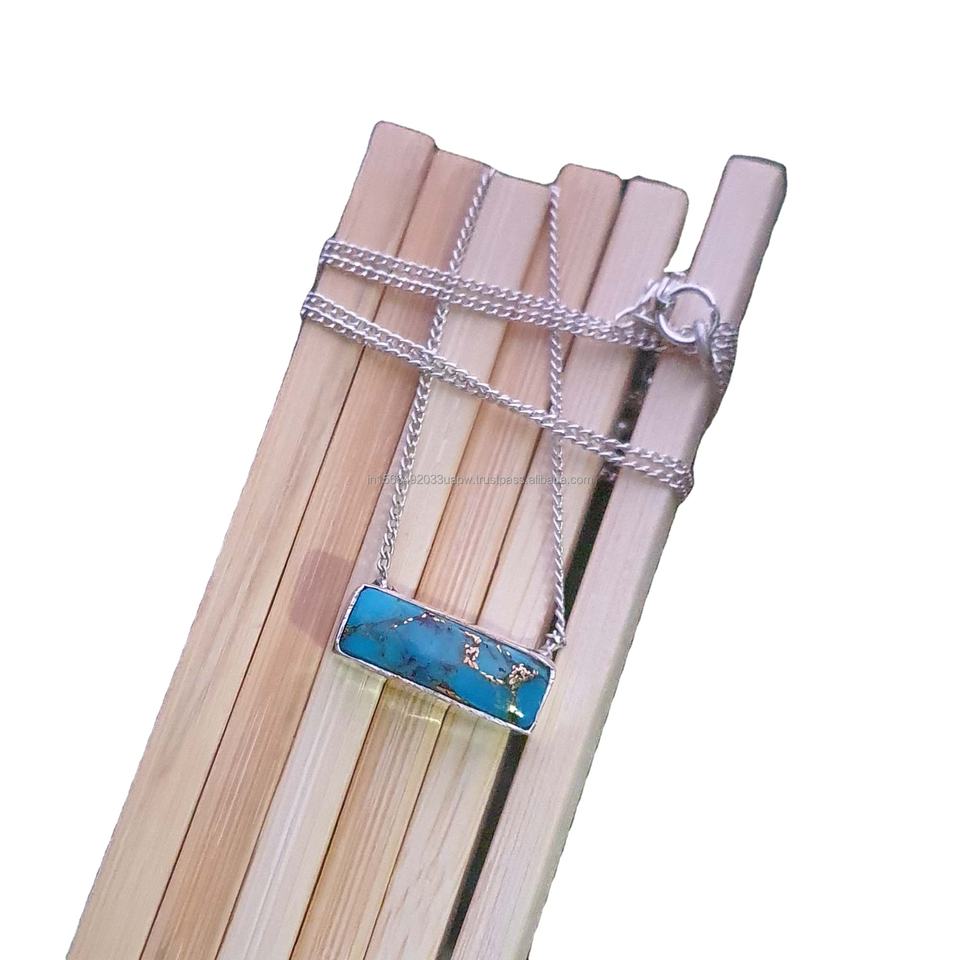 Precio al por mayor collares de piedra turquesa minimalistas a granel Cadena de plata de ley 925 colgante de piedras preciosas rectangulares compromiso de moda