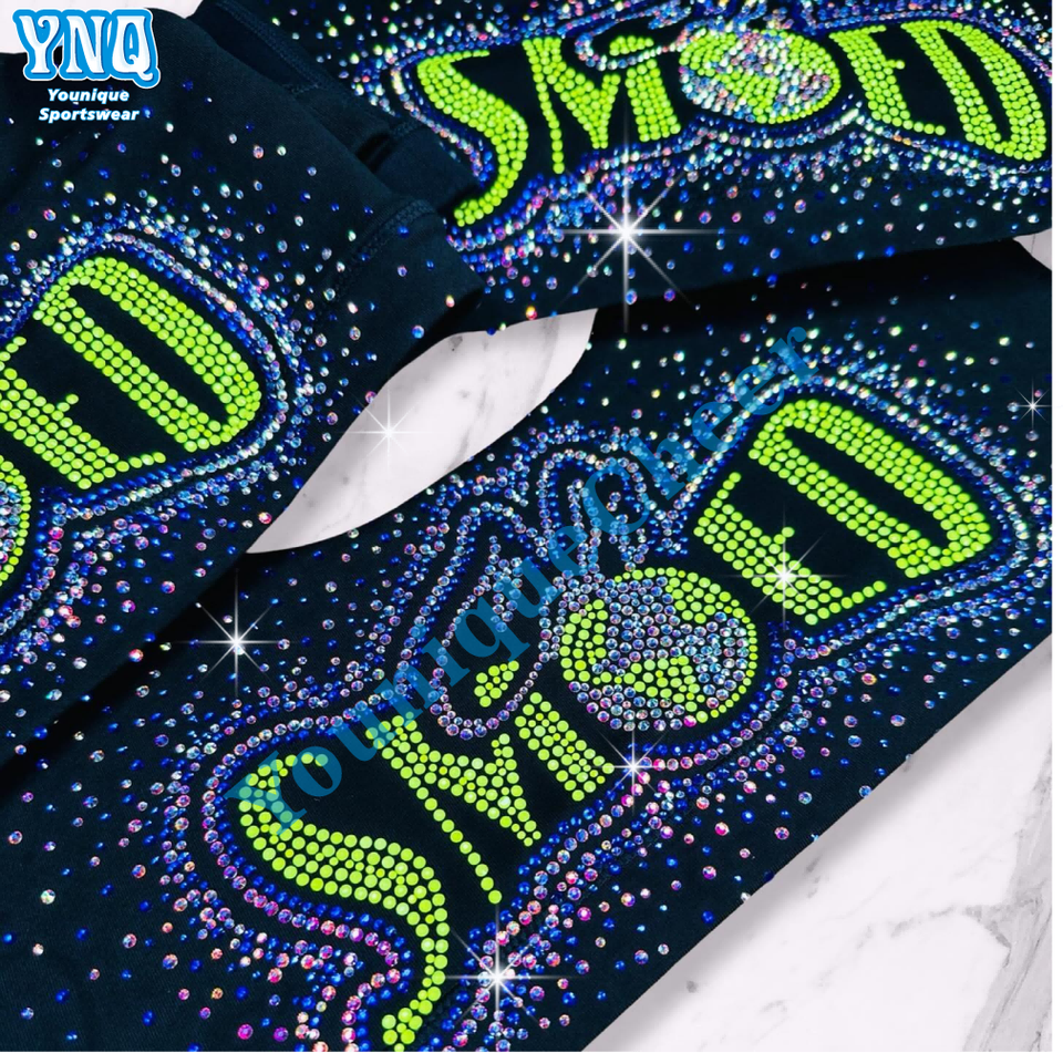 Cheer Bling diseño hotfix de strass personalizado, transfer térmico para planchar en camisetas, precio al por mayor