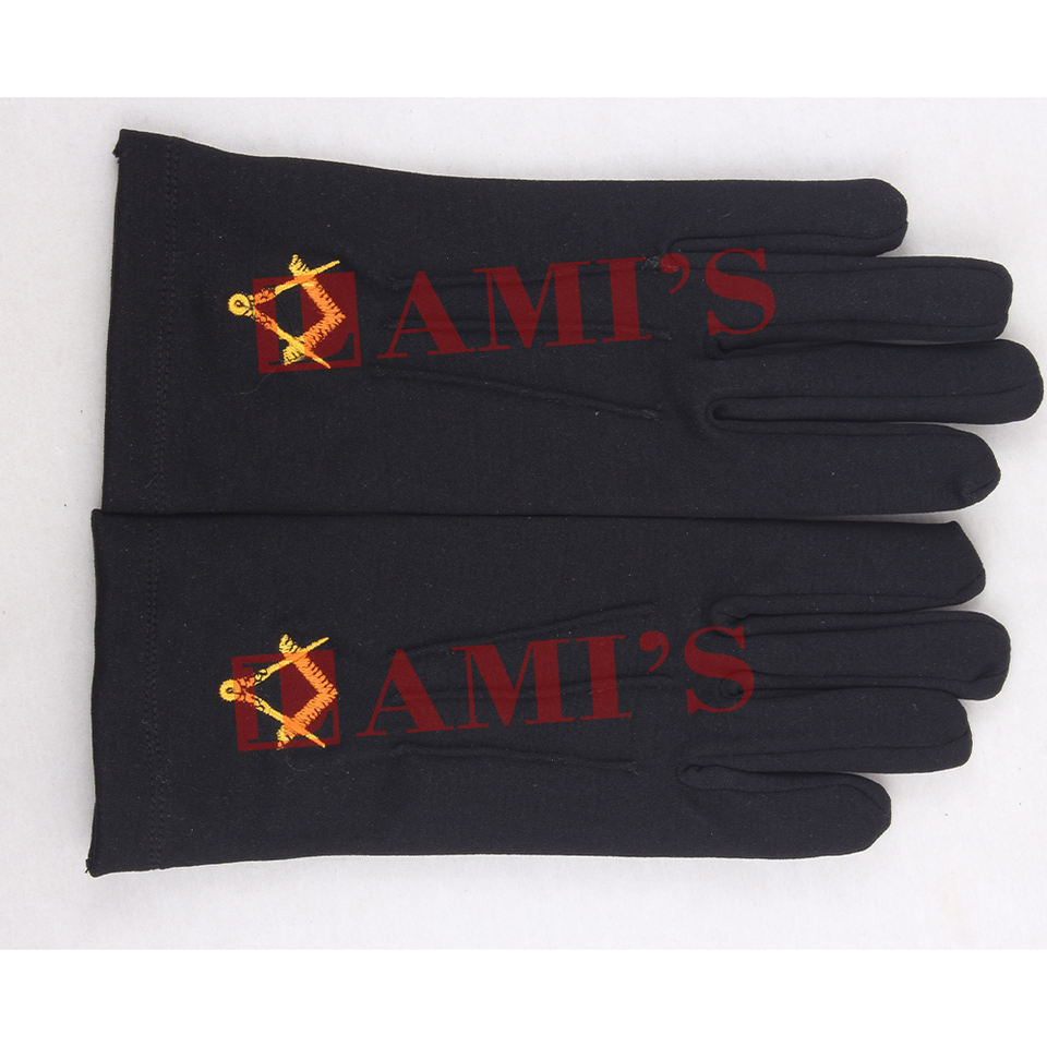 Precio al por mayor Guantes cuadrados y brújula bordados personalizados Guantes Regalia masónicos de algodón negro