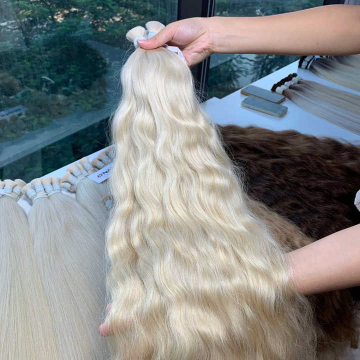 Extensiones de Cabello al Por Mayor de Alta Calidad, 100g, 28 Pulgadas, Cabello Humano Virgen, Color Marrón, Ondulado Natural