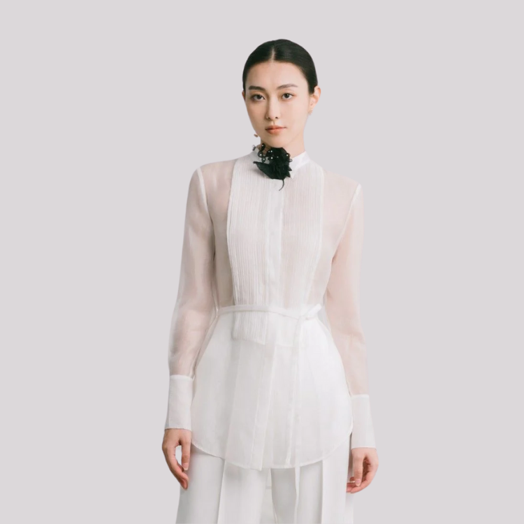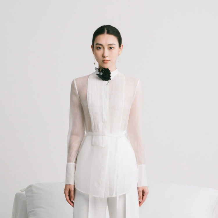 Precio al por mayor Señora Camisa Blusa GRIS MANGA LARGA BLUSA Manga larga Tela de alta calidad Ropa de mujer Elegante Hormiga blanca