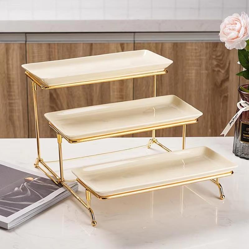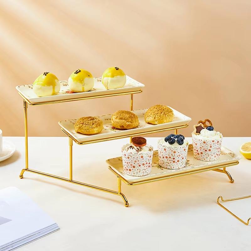 Precio al por mayor Metal/Estante de exhibición de pasteles de cerámica Bandeja de servicio Venta caliente Soporte de pastel de metal Soporte de pastel de calidad superior