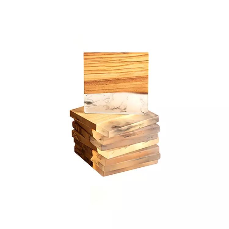 Posavasos de resina de madera cuadrada de 4 pulgadas de Color Natural a precio al por mayor, posavasos resistentes al calor ecológicos, posavasos para tazas de té, alfombrillas para el hogar