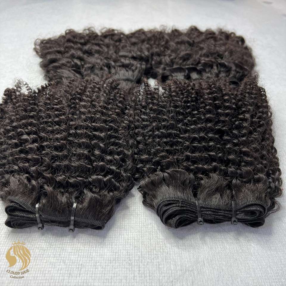 Paquetes de cabello crudo de doble estiramiento de Color Natural de Grado Superior Precio al por mayor Extensiones de cabello humano rizado Extremos súper dobles dibujados