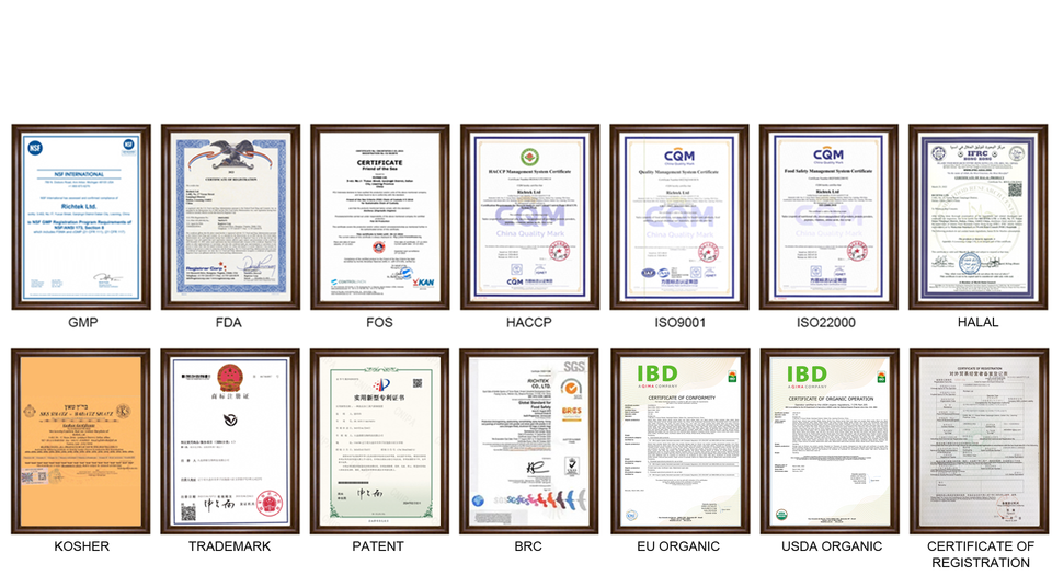 Certificación:FDA, GMP, HACCP, HALAL, KOSHER