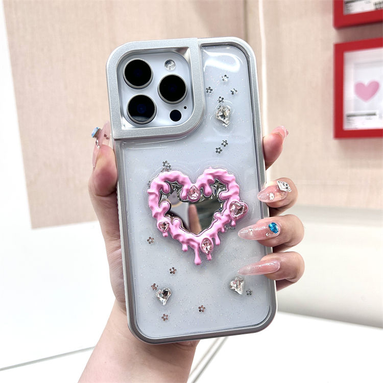 Nombre del producto:Caja del teléfono accesorios del diamante del espejo del corazón