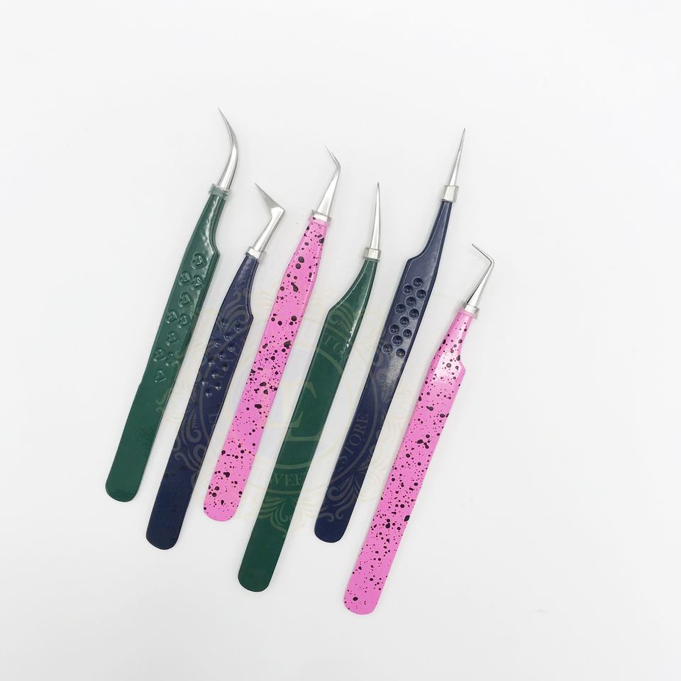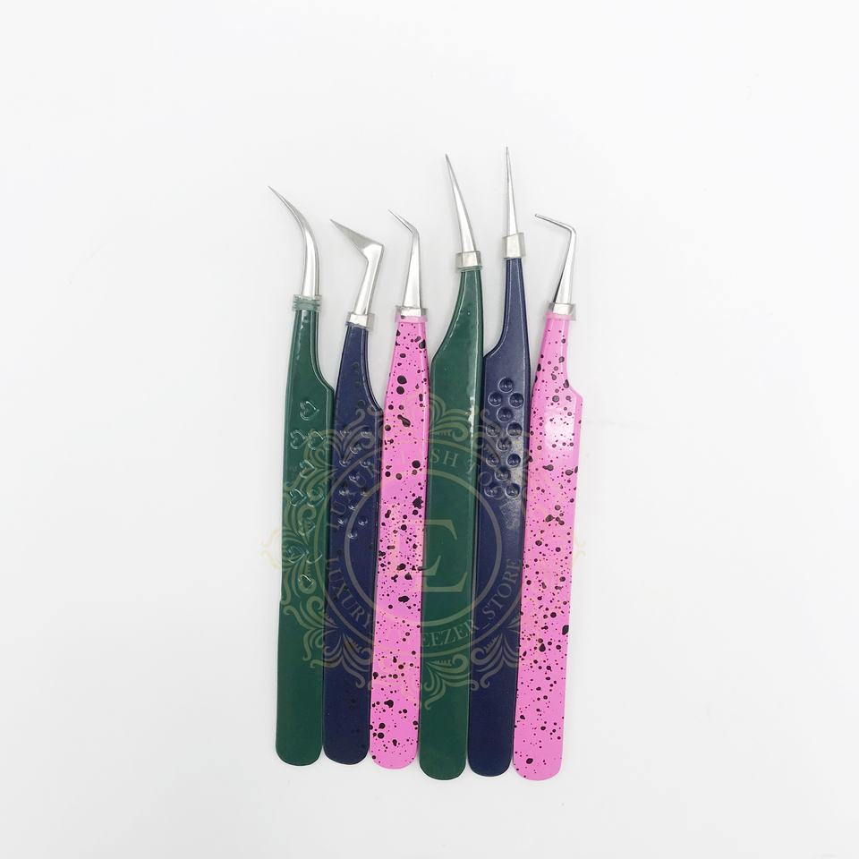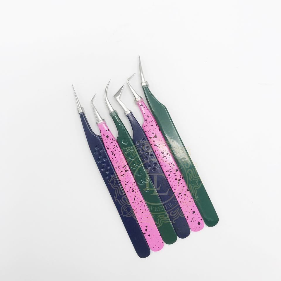 Pinzas para pestañas con punta plateada, precio al por mayor, mango liso de acero inoxidable sostenible con recubrimiento de polvo múltiple, Etiqueta Privada