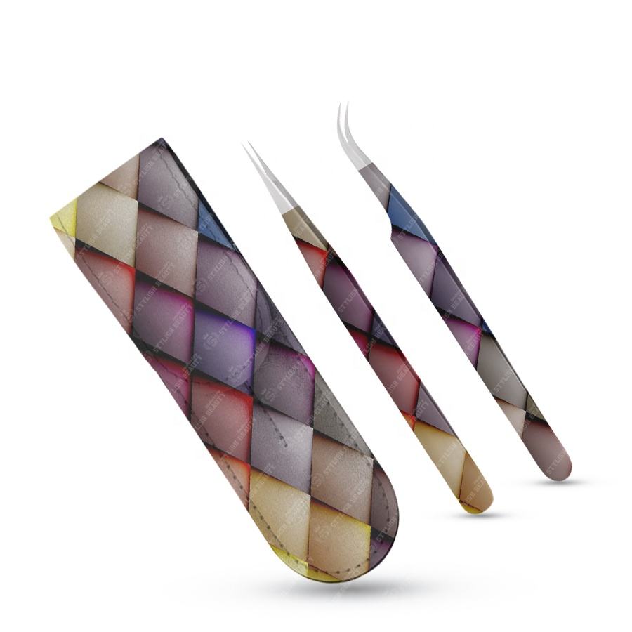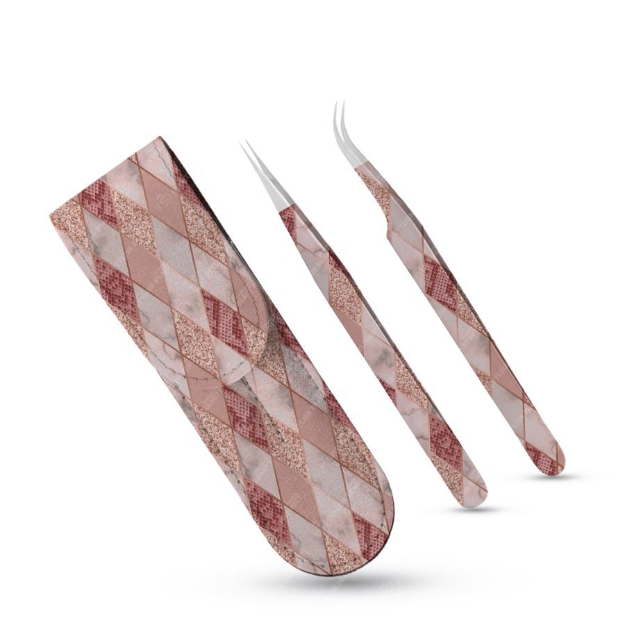 Pinzas para Pestañas de Acero Inoxidable al por Mayor, Juego de 2 Piezas con Estuche, Logotipo Personalizado, Marca Privada
