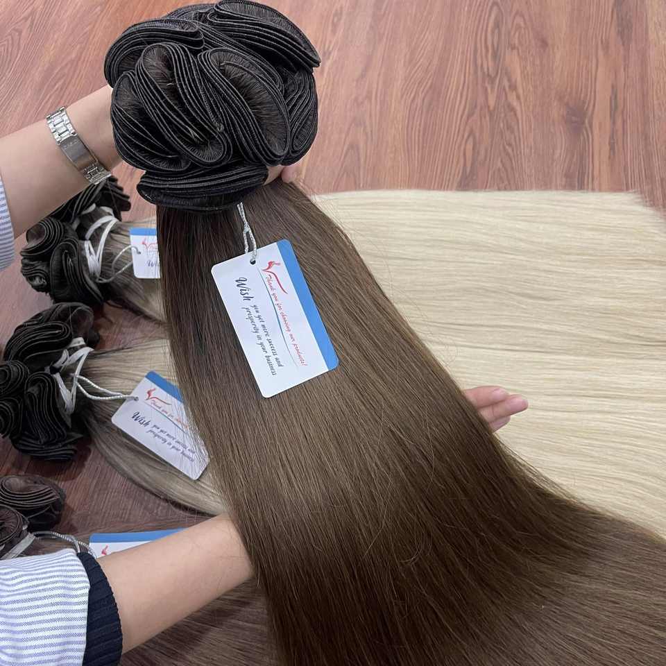 Extensiones de Cabello Vietnamitas Tejidas a Mano, Lisas, de Trama Recta, Cabello Teñido, Sedoso, Doble Trama, Gran Stock, Precio al por Mayor