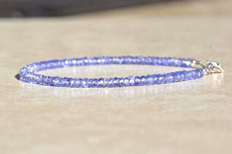 Precio al por mayor de tanzanita Rondelle forma facetada piedra preciosa suelta pulsera de plata con cuentas de piedra Natural de calidad increíble