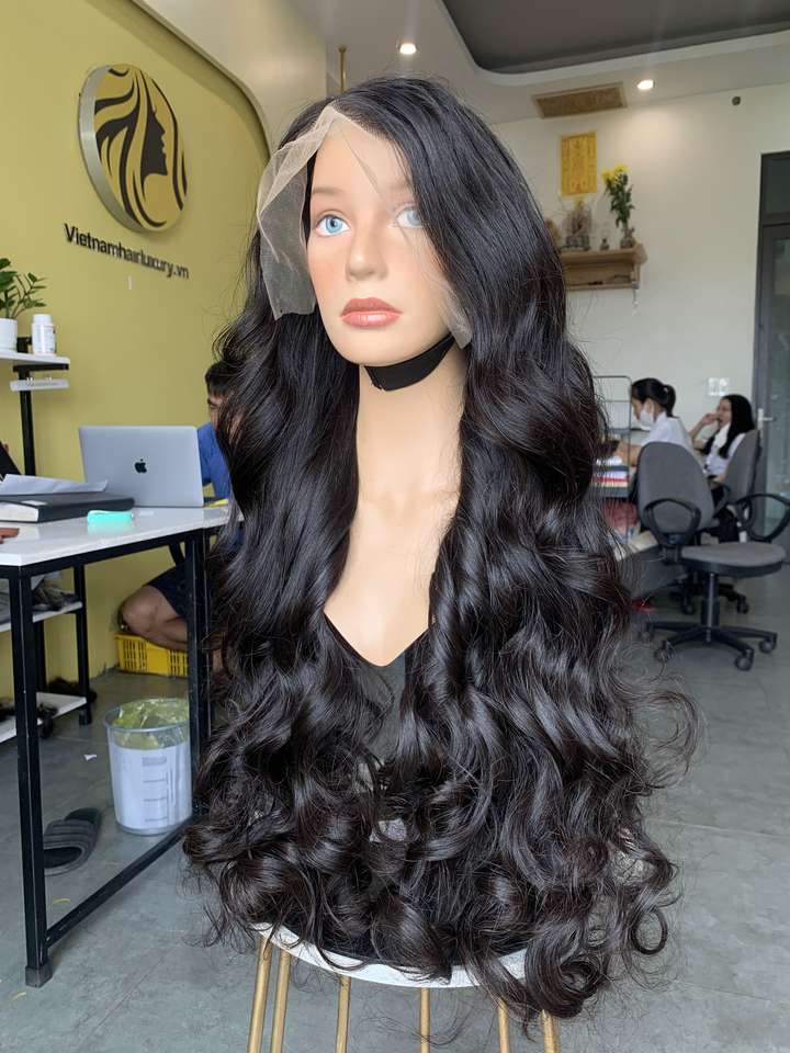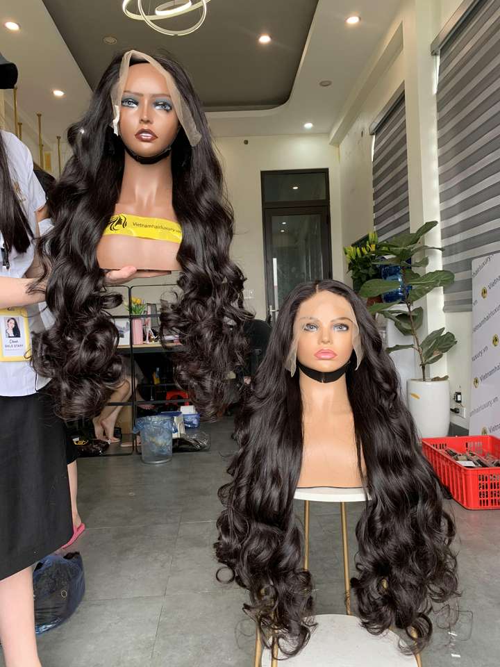 Precio al por Mayor de Extensiones de Cabello Humano Virgen Vietnamita, Sin Enredos ni Caída, Pelucas con Flequillo Ondulado, Cabello Remy