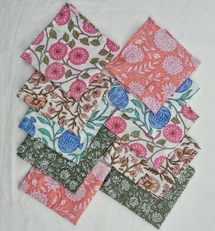 Nombre del producto:Servilleta Estampada a Mano con Bloques, 100% Algodón
