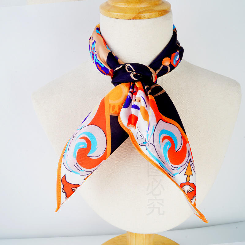 Pañuelo Cuadrado de Seda Satinada con Diseño Personalizado Estampado al por Mayor para Mujer, 58 cm, Pañuelo Hijab Árabe