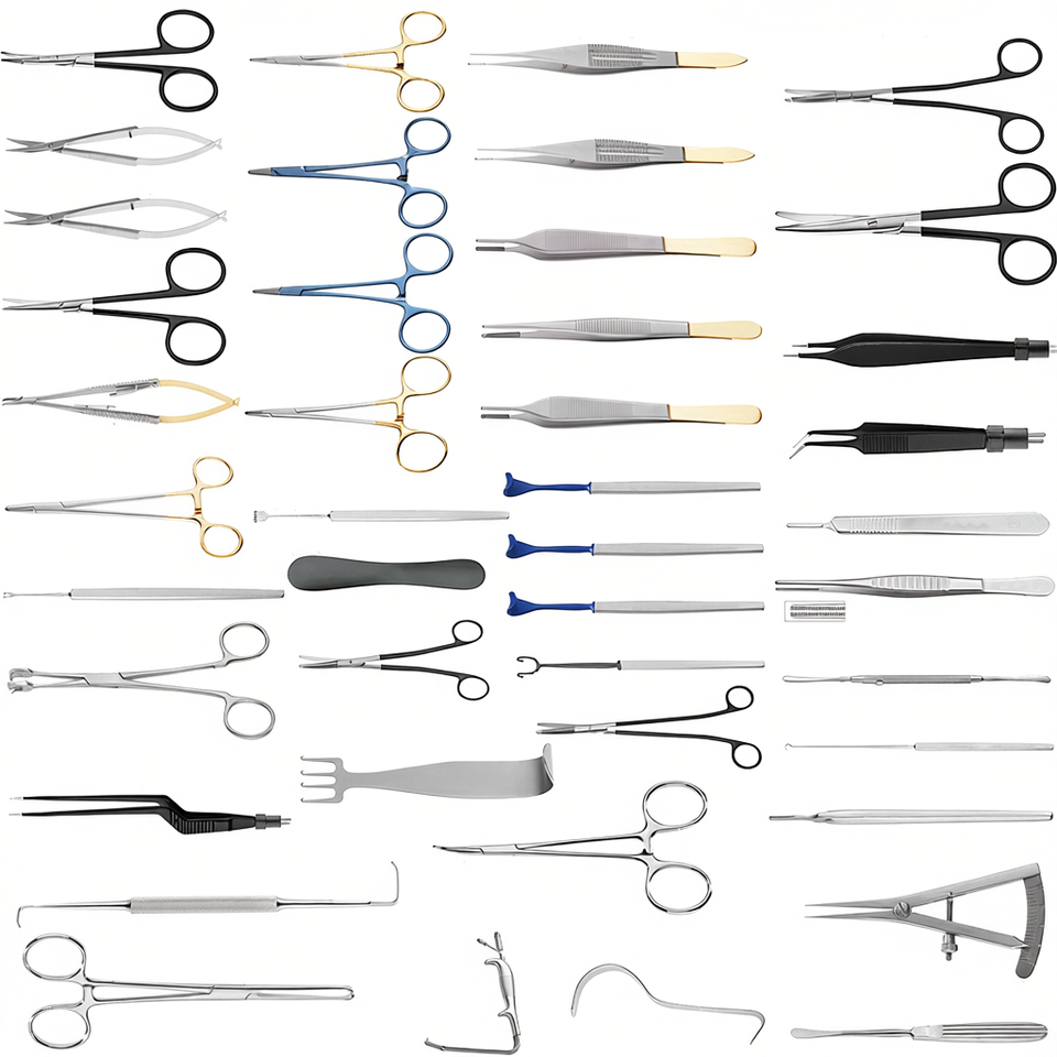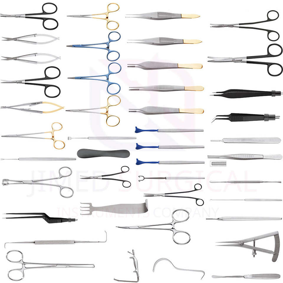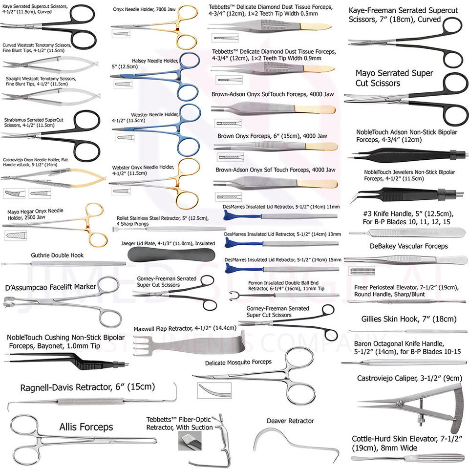 Juego básico de cirugía plástica profesional al por mayor, 43 Uds., Manual de acero inoxidable, Kit de instrumentos para cirugía General Vinyard Facelift