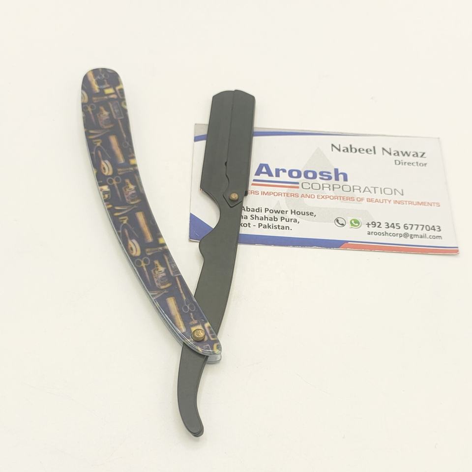 Maquinilla de afeitar recta profesional de acero inoxidable al por mayor, maquinilla de afeitar manual negra con bloqueo oscilante de papel impresa personalizada