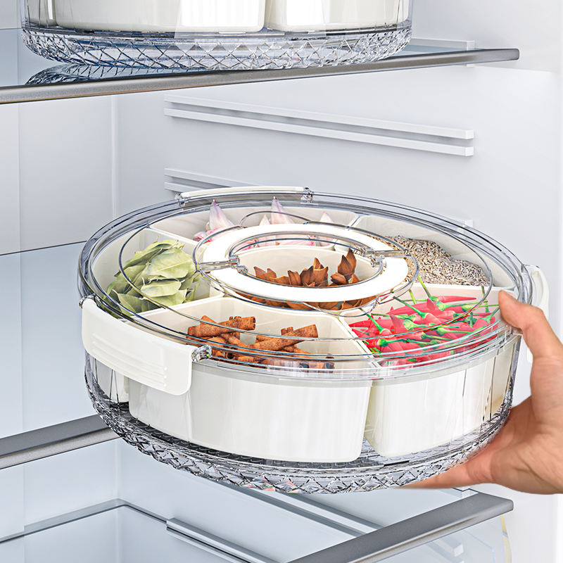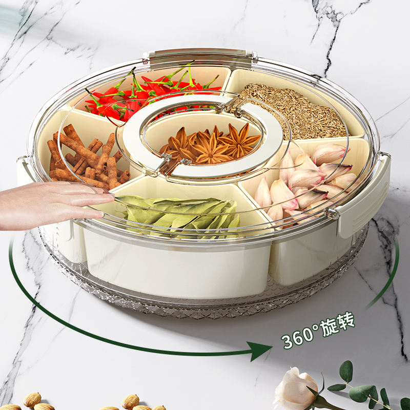 Paquete de Snacks Giratorio Portátil Proins al por Mayor con Correa de Mano y Hoja de Pegatinas, Dispensador de 5 Compartimentos con Tapa