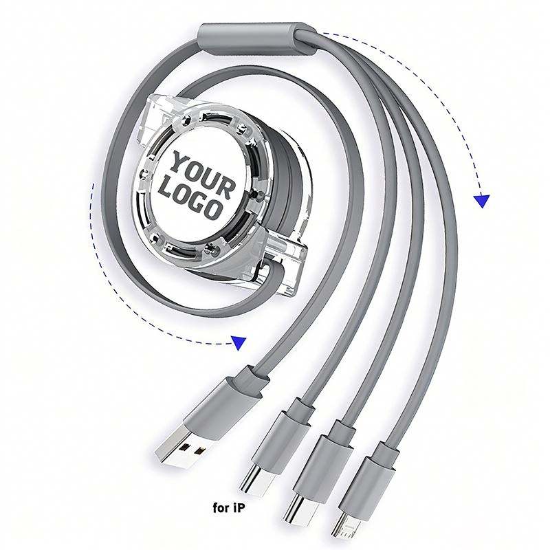 Cable de Carga para Teléfono Móvil 3 en 1 Retráctil con Logotipo Personalizado, Cable Micro USB de Carga Rápida de 1M, Venta al Por Mayor