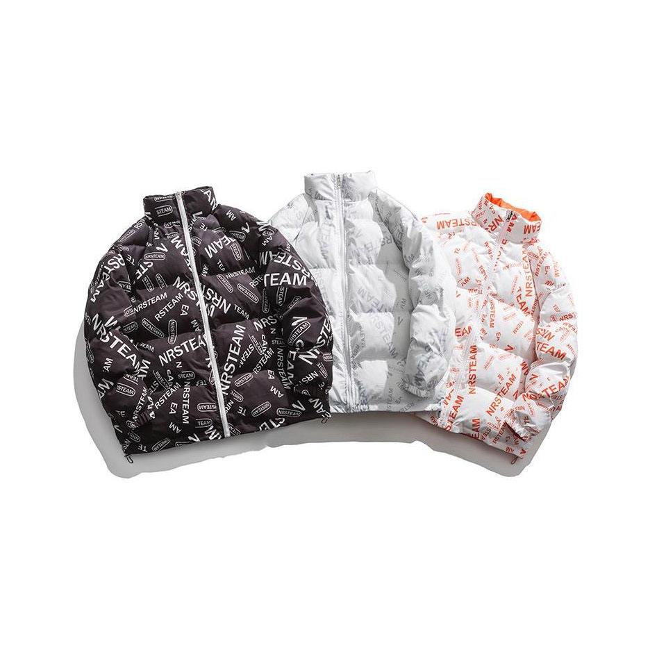 Chaqueta acolchada de estilo callejero personalizable para hombre al por mayor, chaqueta de burbuja de invierno con bolsillo impreso OEM con logotipo personalizado