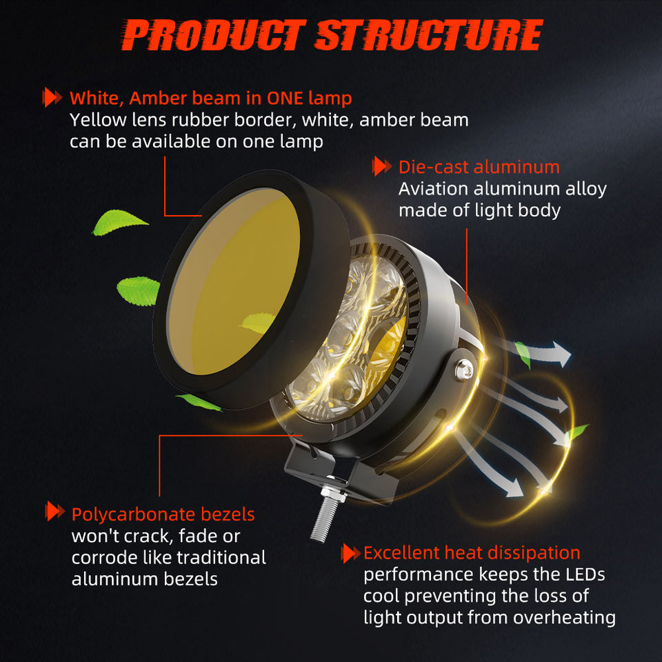 Luces LED Blancas Puras para Motocicleta, Accesorios, Luces de Buceo de Haz Concentrado, Lámpara Auxiliar de 4.5 Pulgadas y 72 Vatios con Cubiertas Amarillas, Venta al Por Mayor