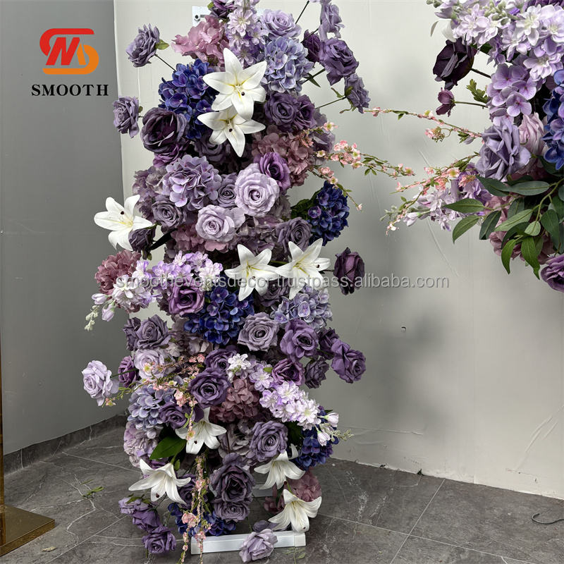 Flores artificiales de lirio rosa de seda púrpura al por mayor, guirnalda de mesa suave, arreglos florales, decoración, nuevo modelo de corredores de flores