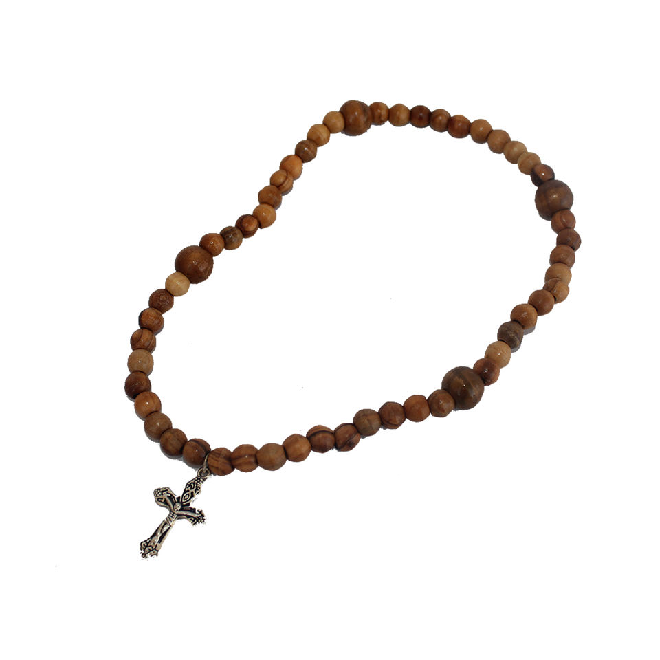 Venta al por mayor calidad personalizada de moda 2025 pulsera de cuentas de madera natural Rosario estilo religioso cristiano