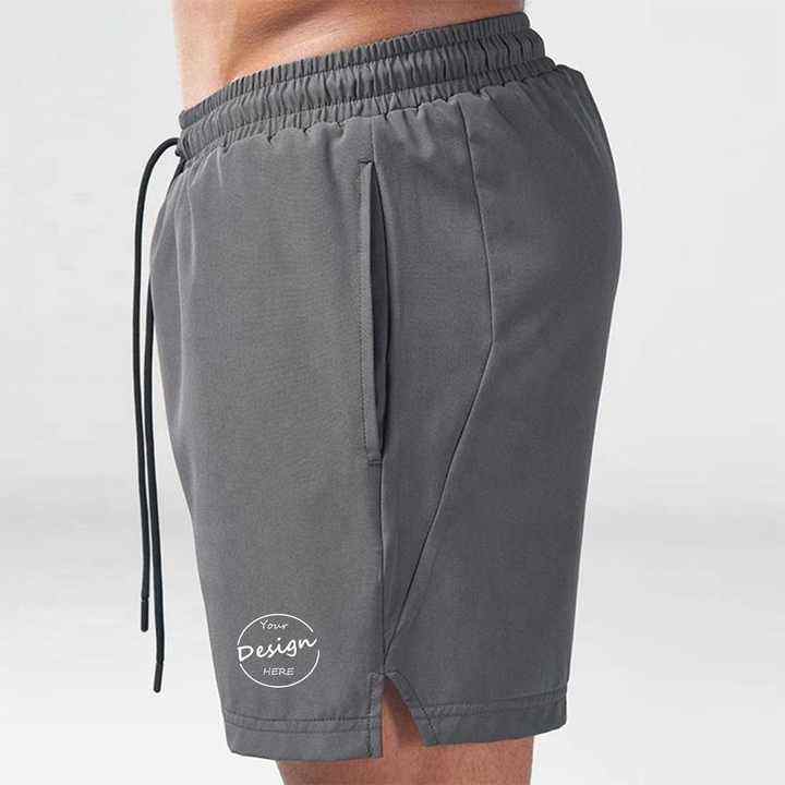 Pantalones cortos de gimnasio informales ecológicos para hombre, de alta calidad, ligeros, de secado rápido, de nailon, sólidos, teñidos, con bolsillo de carga y cremallera para correr