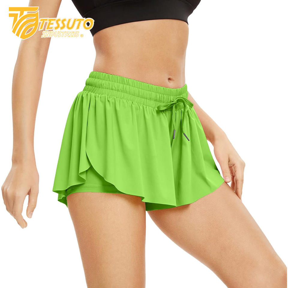Pantalones cortos deportivos para correr de secado rápido al por mayor, pantalones cortos deportivos de doble capa con cintura elástica para entrenamiento activo, pantalones cortos de yoga para ciclismo al aire libre para mujer