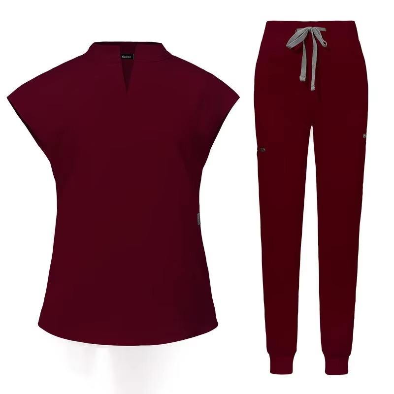 Uniforme de enfermera médico transpirable a la moda de LICRA rayón de talla grande con logotipo personalizado y tarifa al por mayor, conjuntos de uniformes médicos para mujer