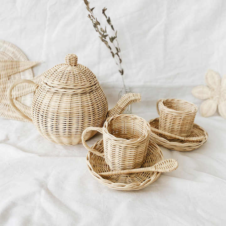 Juego de tetera de ratán