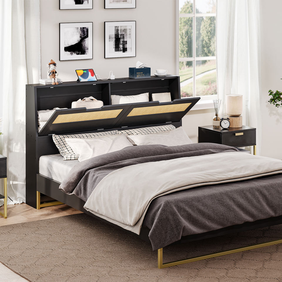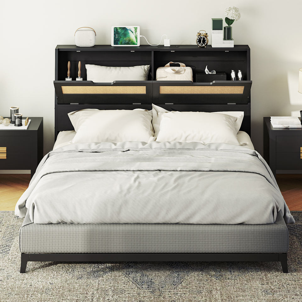 Venta al por mayor de cabeceros de ratán, marca HOOBRO, cabecero de cama de tamaño King/Queen/Full/Doulbe/Twin/Single Size para marco de cama