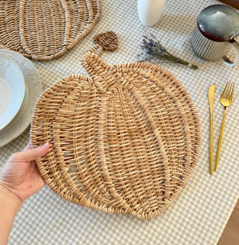 Nombre del producto:Rattan Pumpkin Placemat Alfombra de mesa de mimbre tejida a mano