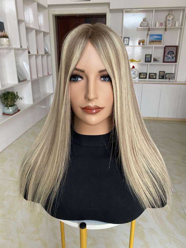 Extensiones de Cabello Humano Virgen Europeo al por Mayor, Topper de Seda 9x9, Mini Peluca con Nudos Invisibles, Color Rubio Degradado para Mujeres con Pérdida de Cabello