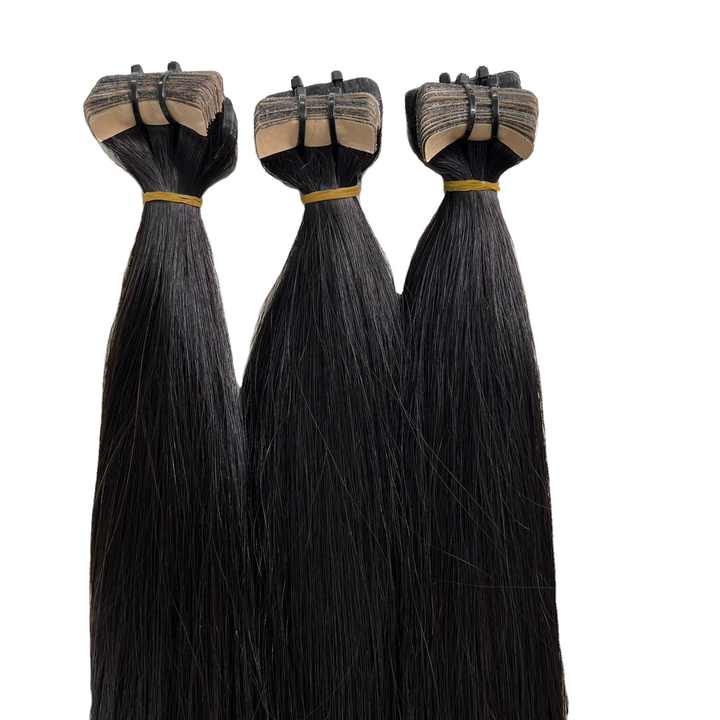 Extensiones de Cabello Vietnamita Virgen al Por Mayor, Doble Trama, Rizado Jerry, Liso Natural, Color 1B, 40 Piezas, Textura Natural, Individual