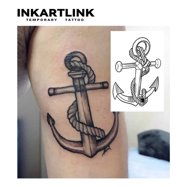 Tatuaje Temporal Realista de Ancla Náutica al por Mayor, Adhesivo Semipermanente de Larga Duración (2 Semanas/15 Días) para Arte Corporal en Brazos de Hombres y Mujeres