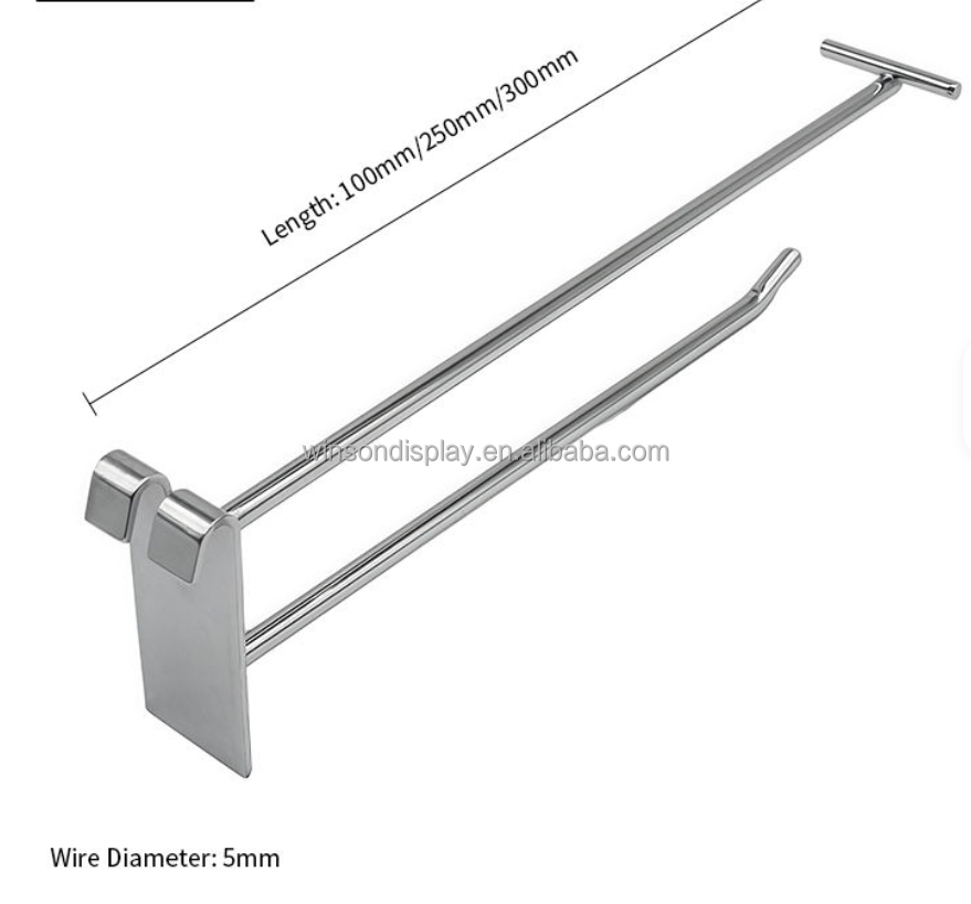 Ganchos Metálicos Individuales Ranurados para Exhibición en Tiendas Minoristas y Mayoristas, Ganchos para Colgar en Paneles Perforados para Uso en Supermercados