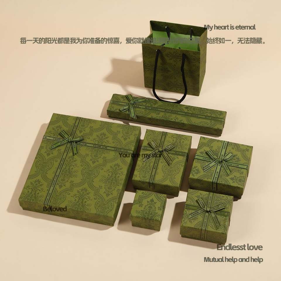 Venta al por mayor retro verde bosque anillo collar caja de lujo Simple papel joyería embalaje accesible de lujo