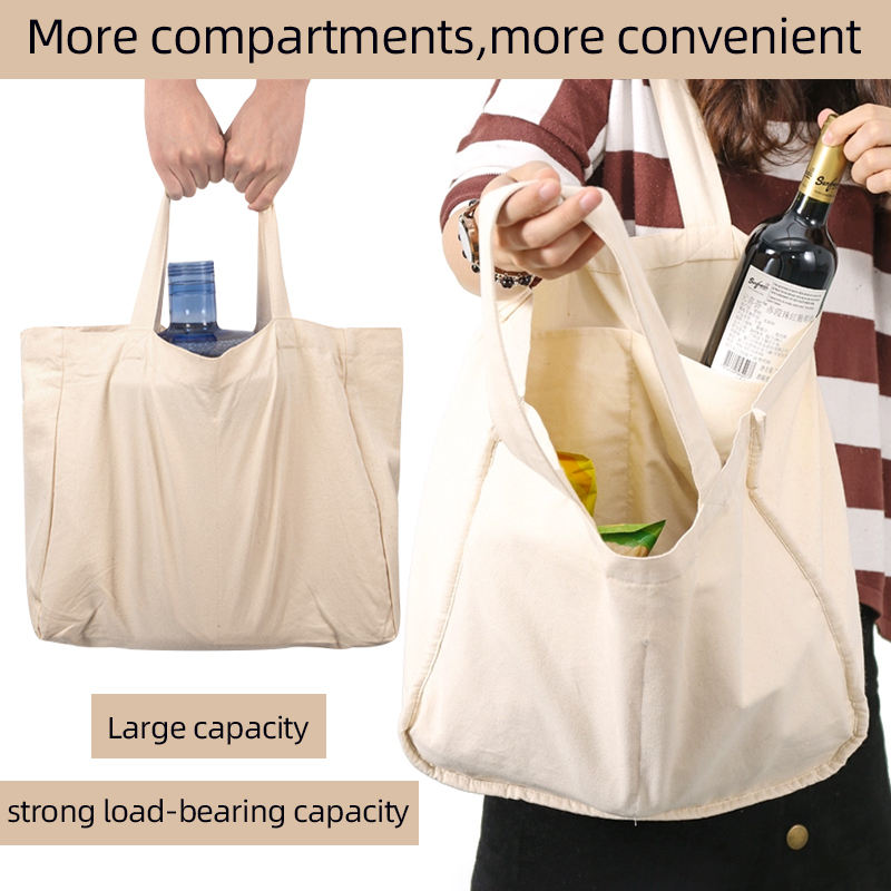 Venta al por mayor reutilizable reciclado y lona bolsa de algodón bolsa de compras con asa de lona Doble