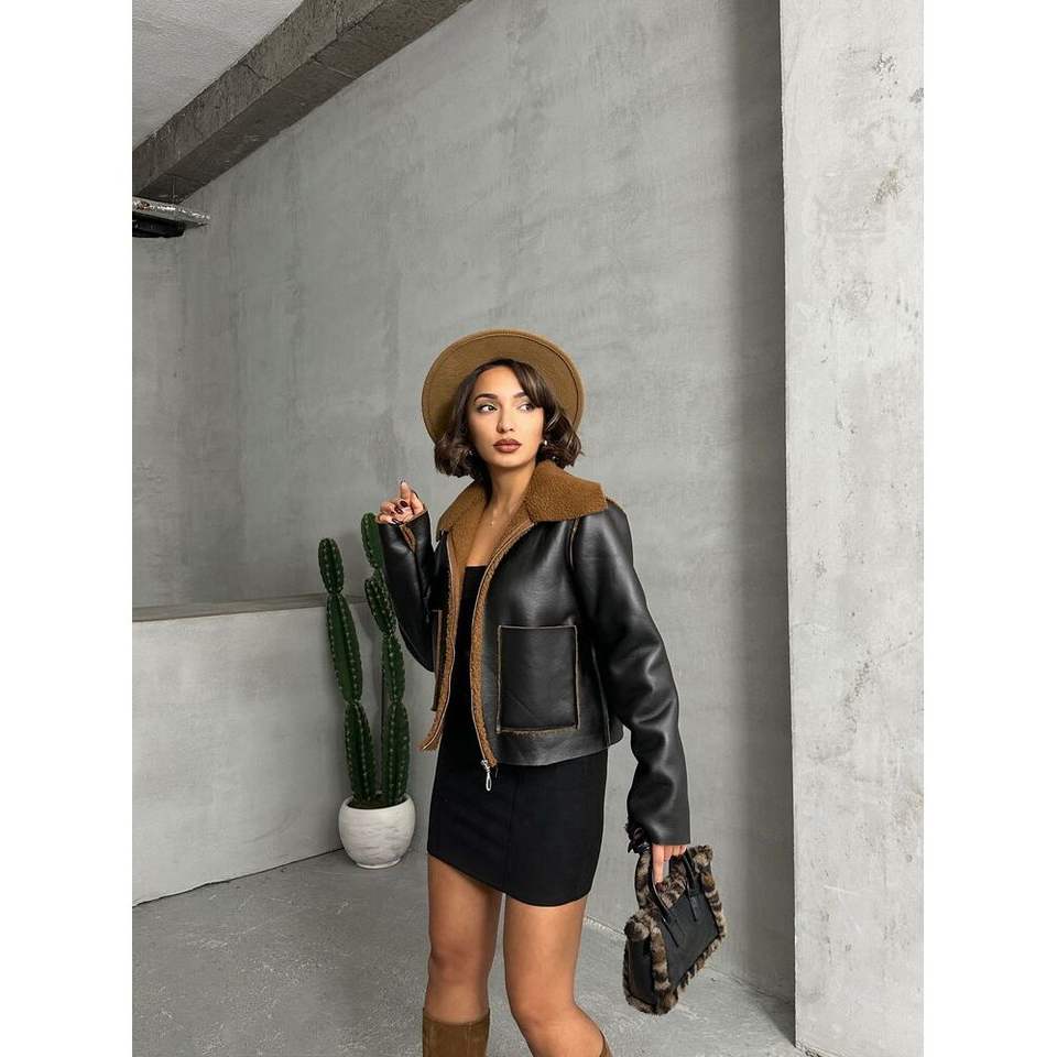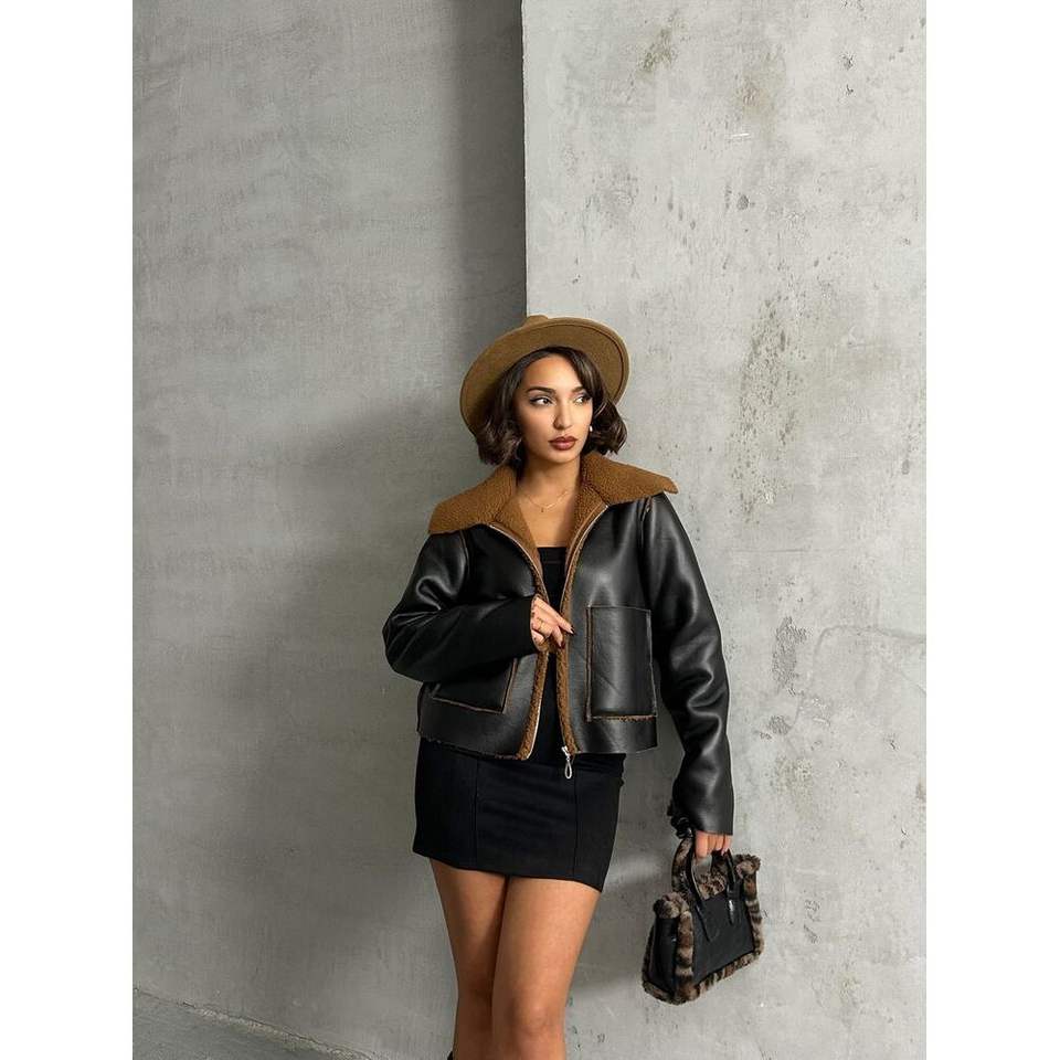 Chaqueta Reversible con Cremallera al por Mayor, Ligera, de Cuero Sintético (Piel de Cordero/Oveja), con Logotipo Personalizado, Adornada con Flecos y Perlas Acolchadas