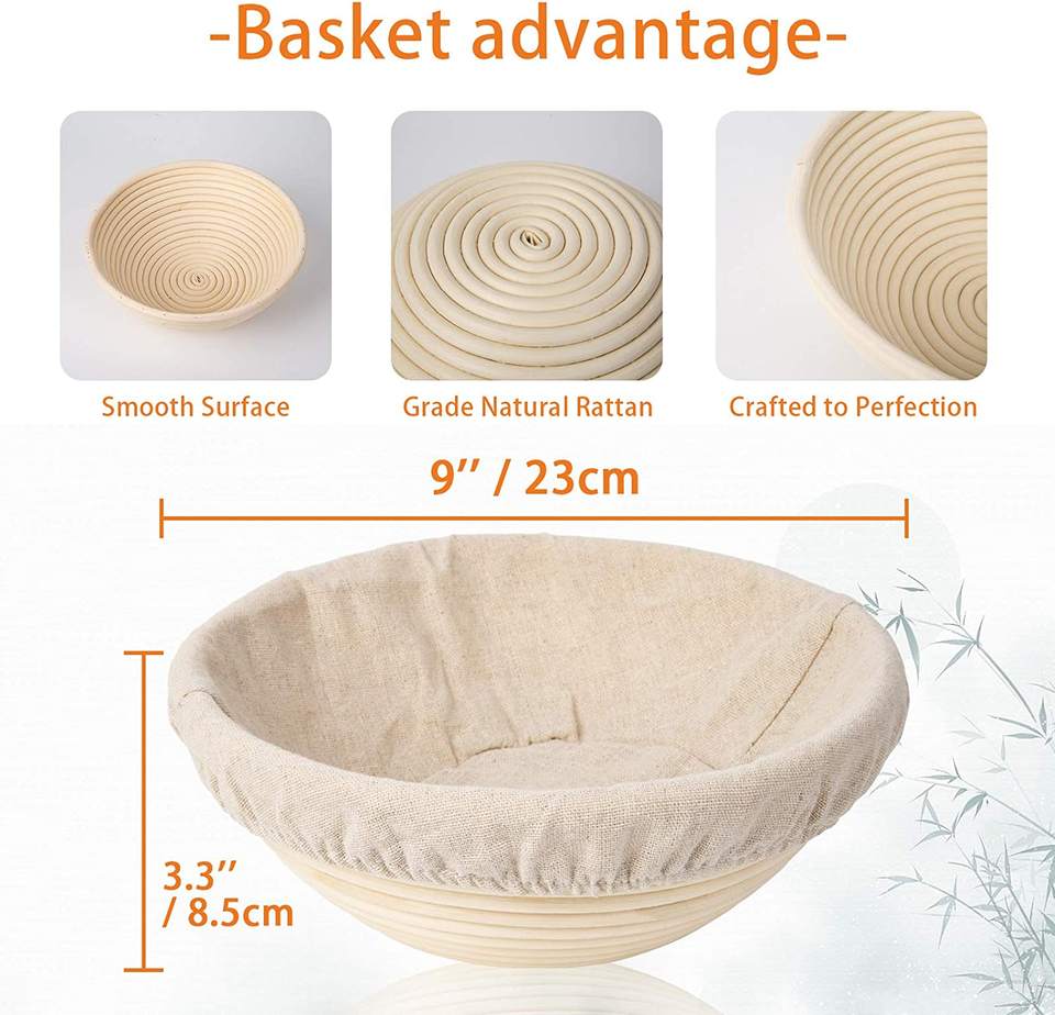 Cesta redonda de mimbre para pan artesanal, cesta de prueba con forro de lino de tela, venta al por mayor
