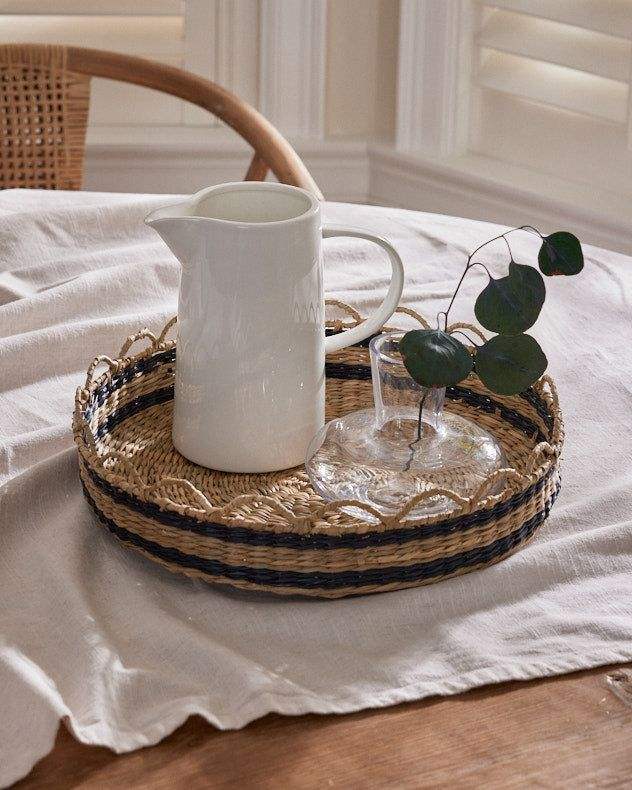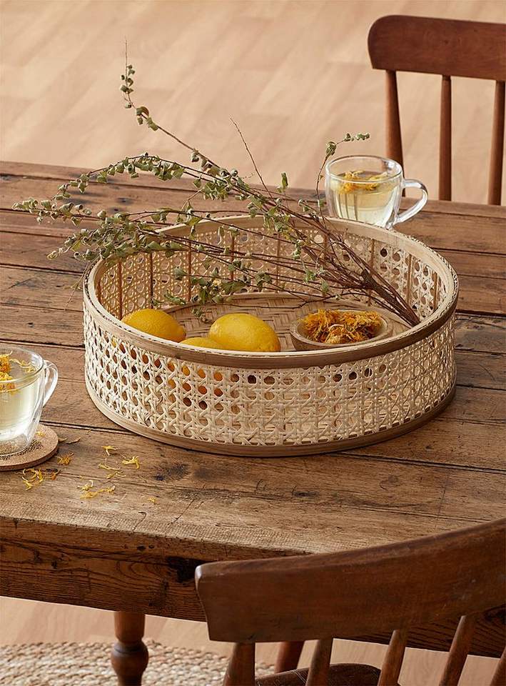 Bandeja de fruta natural de ratán hecha a mano tradicional Redonda al por mayor, Bandejas para servir de ratán personalizadas de diferentes tamaños, bandejas decorativas para el hogar