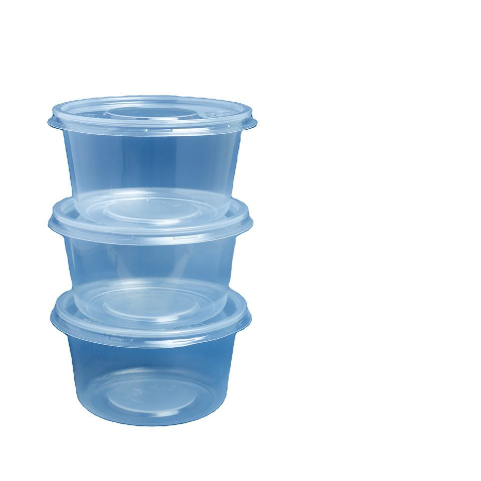 Venta al por mayor de contenedores desechables de forma redonda con tapas para alimentos, caja de almacenamiento de cocina, contenedor de almacenamiento de alimentos de plástico transparente