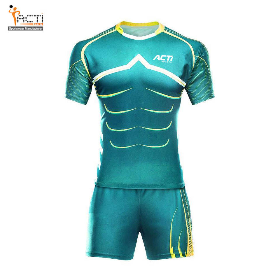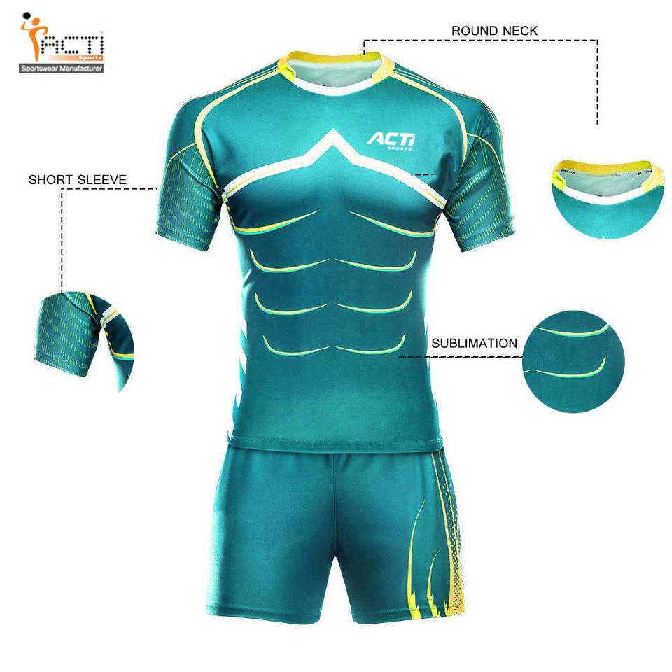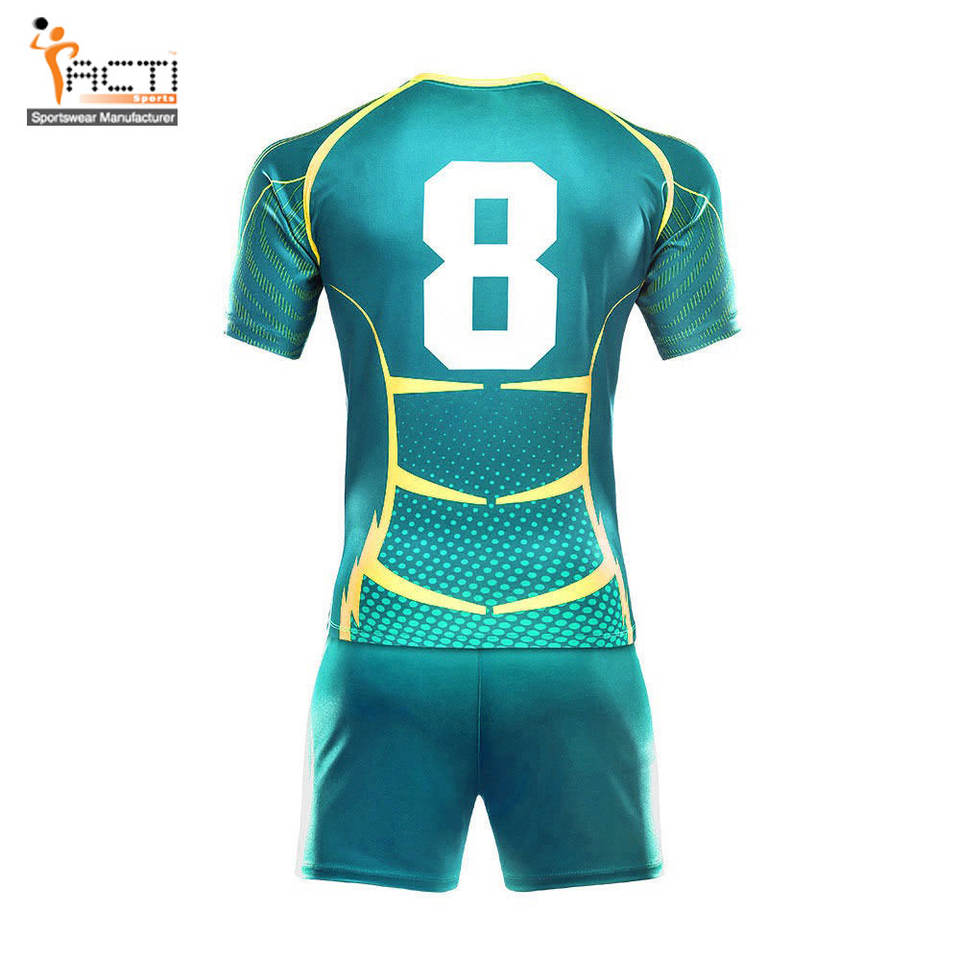 Venta al por mayor camiseta de rugby de secado rápido bordado Impresión digital logotipo del equipo personalizado uniformes conjuntos de estilo personalizado