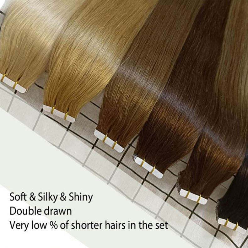 Extensiones de cabello de cinta de alta calidad, cabello ruso, extensiones de cabello con cutícula, cinta adhesiva
