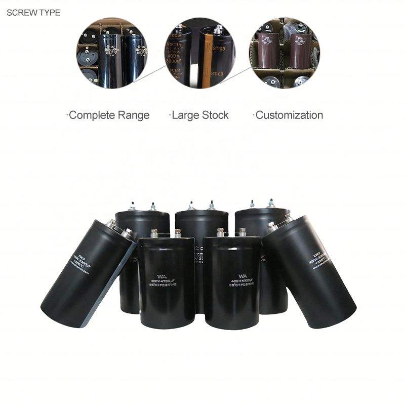 Venta al por mayor Terminal de tornillo Condensador electrolítico de aluminio 180V 350V 400V 450V 500V 550V Todos los condensadores grandes tipo perno VDC UF